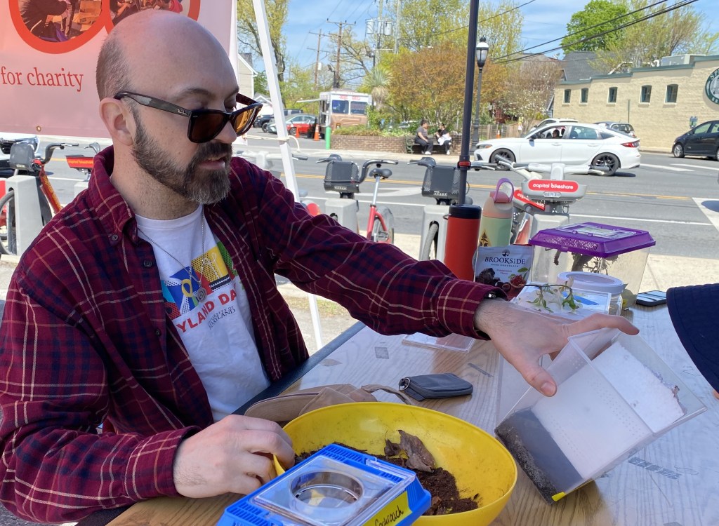 FONTT and the UMD Insect Zoo teamed up for the fifth year at the TPSS Coop Earth Day Celebration. Two FONTT displays focused on Maryland native caterpillars as a way to explain why providing habitat in our yards matters. Meanwhile, the UMD zookeepers demystified insects and other creepy crawly things by letting people handle them.