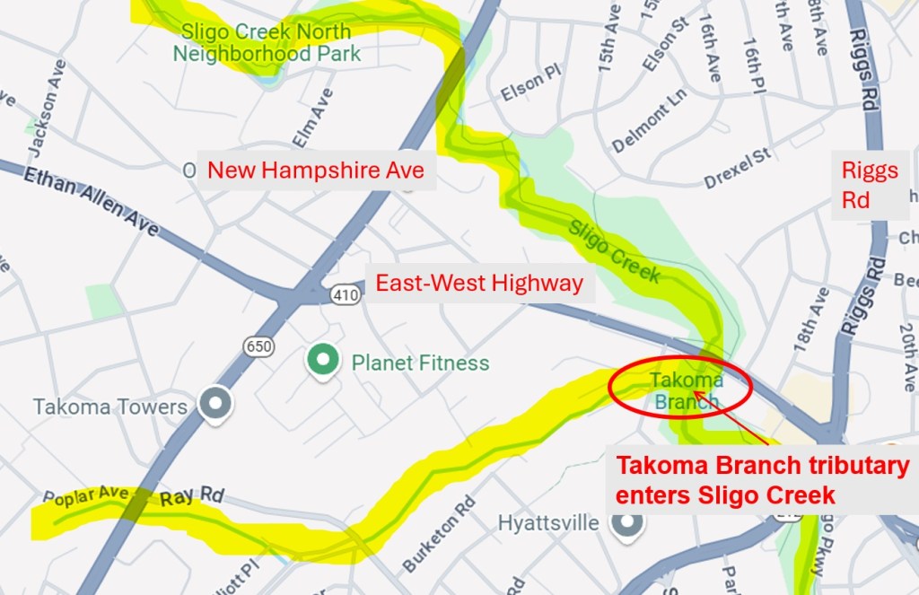 Slater, a long-time FONTT member, also volunteers with Friends of Sligo Creek Salt Watch. He regularly measures the level of chloride at two locations: Sligo Creek downstream of East-West Highway and Takoma Branch just before it enters Sligo.
